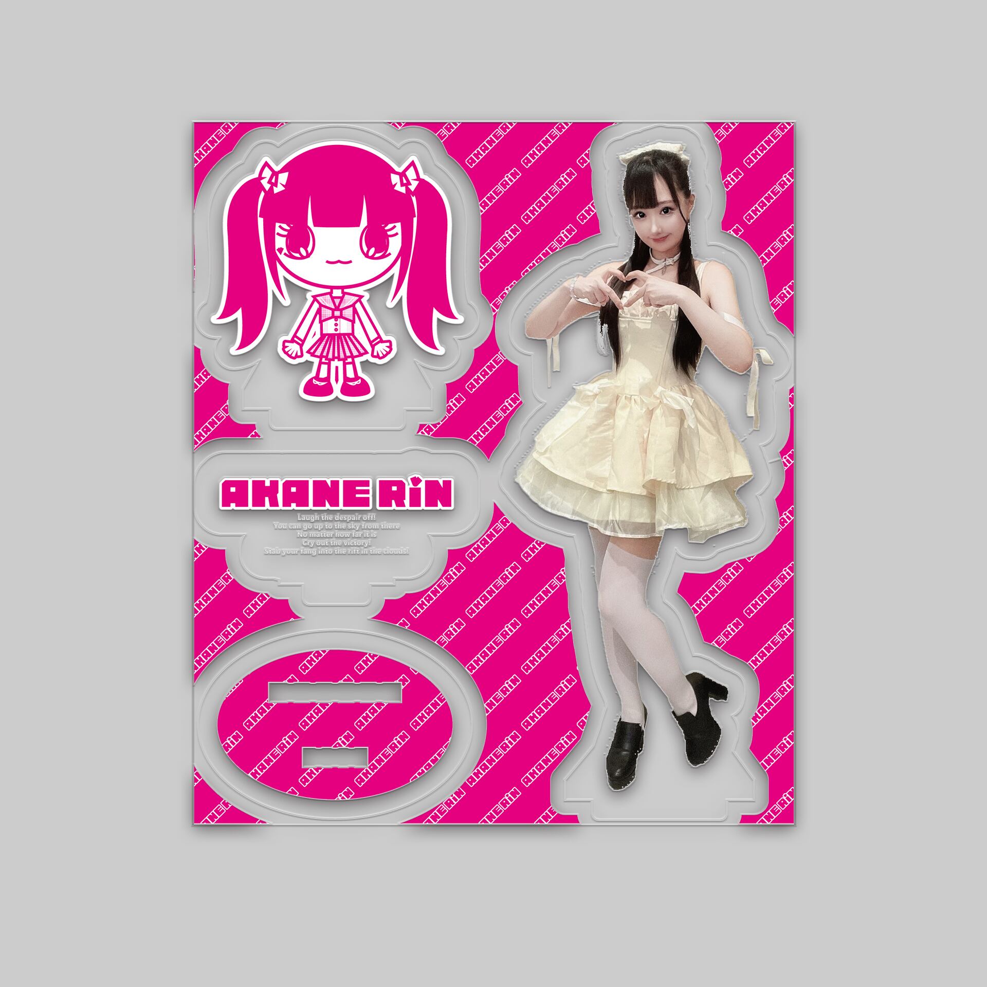 明根凛ちゃんが可愛くポーズを決めるアクリルスタンドです。お部屋やデスクのインテリアとして、写真撮影や動画撮影の際のアクセントとして活躍します。明根凛ちゃんのキュートな笑顔や可愛いポーズを見るたび、癒されること間違いなし!さらに、アクリル素材なので軽量で丈夫。安定感も抜群です。自宅での癒し空間や、オフィスのデスクに飾って明根凛ちゃんとの特別な時間を演出しませんか。明根凛ちゃんの魅力を余すことなくお楽しみいただける、ファン必見のアイテムです。